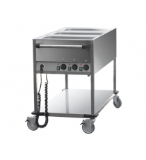 הספק: 2.1 Kw , חד פאזהתכולה של 3 מגשי גסטרונום עומק 20 ס"מ, דפנות המיכלים והמכשיר כפולות, תרמוסטט נפרד לכל תא, טווח טמפ' של 30 עד 90 מעלות, 4 גלגלים 2 קדמיים עם מעצור.